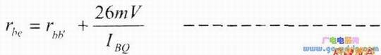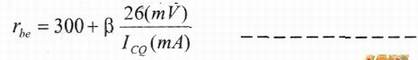 由于基极电流IBQ值很小,不易测量,而集电极电流Q则比较大,容易测量。所以rbe的常用计算公式可以写成: