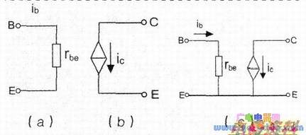 三极管对于信号的等效成如下图(c)所示。