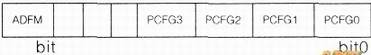 ADCON1是8位的可读写的寄存器,如下图所示,其功能是A/D转换时,选择芯片引脚输入信号的类型(模拟量A或数字量D),以及A/D转换结果存放的格式。