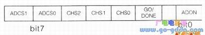 ADCONO的第2位GO/DONE的反也是重要的功能位:在ADON=1时,若令GO/DONE的反=1,启动A/D转换;若令GO/DONE的反=0,A/D转换完成。