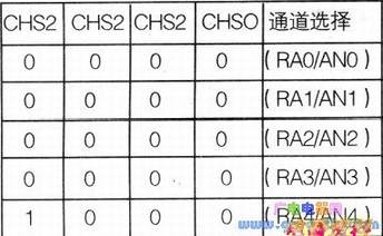 ADCONO的5~3位(Bit5、Bit4和Bit3)CHS2、CHS1、CHSO是A/D转换模拟通道的选择,对Pic16F873A芯片,有下述关系: