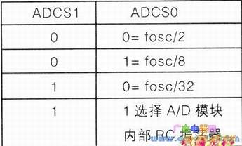 ADCONO的第7、6位即ADCS1和ADCSO,是A/D转换时钟选择位,有以下关系: