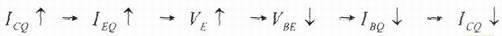 如果因为某种原因使静态电流ICQ变小,自动调整的过程如下,稳定ICQ的道理是相同的。