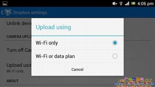 如果你是一个敏锐的Dropbox用户或者在线音乐发烧友的话,在只有Wi-Fi的时候进行上传,那么绝对会为你的手机电池省出很大一部分电量。因为大部分时间Wi-Fi的连接速度更快,所以数据交换的时间更短,消耗你手机锂电池容量的时间也就越短。