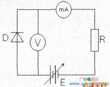 当正向电压从0伏开始逐渐升高,直至0.4V时,毫安表的指针都没有摆动,说明没有电流通过二极管。当正向电压加至0.5V左右时毫安表的指针才开始摆动,说明从此刻开始,才有很小的电流通过二极管。