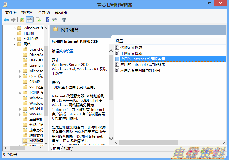 其一,组策略法中,无法为隔离网络指定代理服务器的代理端口,所以,使用非80口的应用可能还是不能正常工作。例如,应用商店在这样设置时,只能浏览应用,无法更新软件和下载软件。
