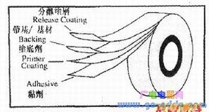 电气胶带的基本结构包括分离涂层(ReleaseCoating)、带基/基材(Backing)、涂底剂(PrimerCoating)、粘剂(Adhesive),如下图所示。