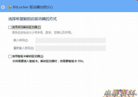 初始化结束后我们会看到加密方式选择的窗口,这里我们选择使用密码凭证解锁驱动器,在这里我们可以输入自定义的密码进行加密: