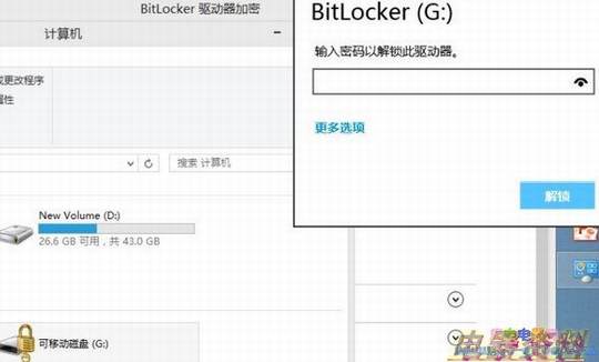 在这里我们输入密码就可以正确解锁并使用了,如果我们忘记了密码也没有关系,点击更多选项,点击输入恢复密钥,输入前面我们所备份的密钥就可以了。