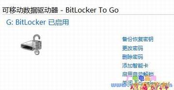 其中G盘就是我们的将要加密的U盘的盘符,我们点击右侧的子菜单按钮,打开如下子菜单: