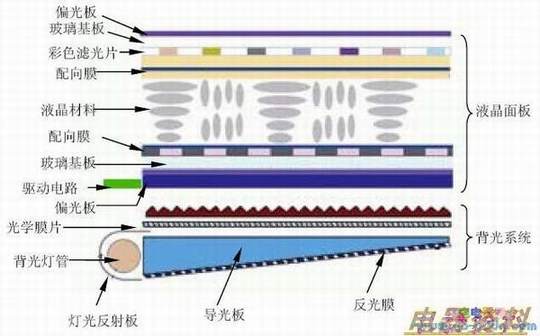 笔记本电脑显示屏的液晶面板主要由偏光板、玻璃基板、彩色滤光片、配向膜、液晶材料、光学膜片、驱动、外壳等组成。