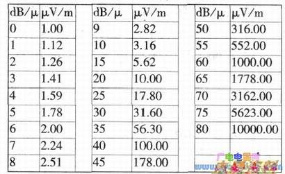 场强的含义是:电磁波在某点的电场强度称之为场强,离源头越近,波浪越大,反之,则越小。同样道理,离电波发射点越近,则场强越强(有“惊涛骇浪”),反之则越弱(只有“微波涟漪”了)。场强的单位符号用毫伏/米(mv/m)或微伏/米(μv/m)来表示;也有用/微伏表示的。它们之间的换算关系如下表所示: