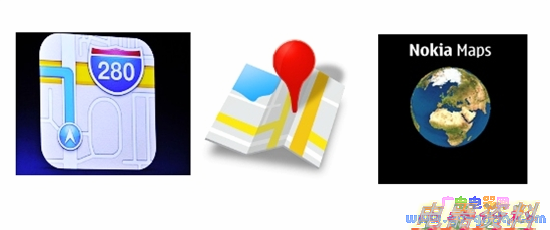 iOS:苹果将在iOS 6中完全移除使用了五年的Google地图,改用自家地图服务作为原生地图支持,为用户提供交通状况、路线导航和各类信息。苹果的地图还整合了3D地图模式,让地图变得更加好看,也给予了部分路痴用户更好的导航信息。但是没有原生公共交通导航是苹果地图的一大硬伤,看起来苹果暂时只能依靠第三方软件来解决这一问题。而在中国,由于苹果没有地图服务资质,他们将会采用高德地图作为地图数据支持,这却是中国用户的福音,相信高德地图可以给我们带来更为本地化的体验。