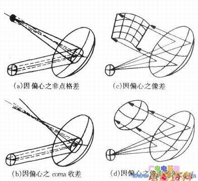 (2)慧差:在回转对称光学的轴外常发生的慧差(coma象差),在偏心光学轴上亦会出现。