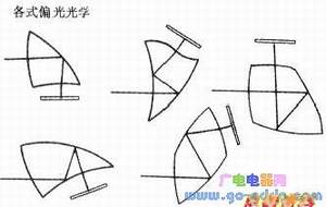 如上所述棱镜与偏心的各面构成小型堆叠状光学系统是偏心光学最大优势。除此之外偏心棱镜(下图)还具有相当于回转对称透射镜片3-4片份的象差修正能力,因此可应用于成象光学系统。