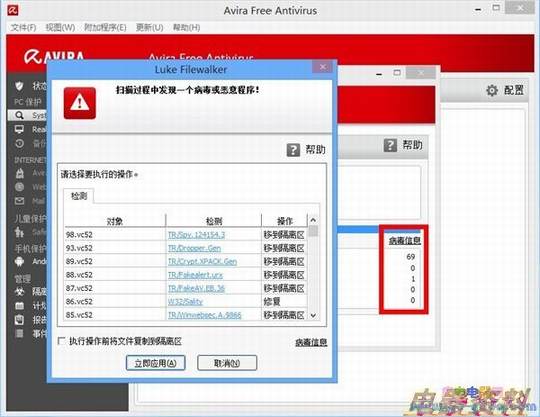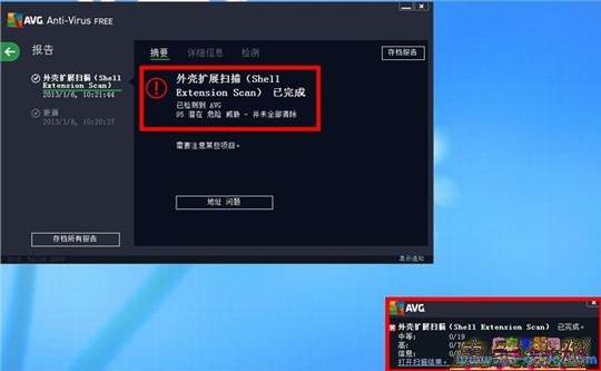 AVG在样本包解压缩时并没有提示检测到病毒,而当对样本包进行扫描的时候,检测出了114个样本中的95个,只能说AVG的检测率太高了。