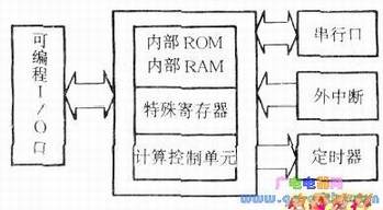 从一般应用的角度出发,我们把一个单片机想像成为由几个功能模块组成的黑匣子,如下图所示: