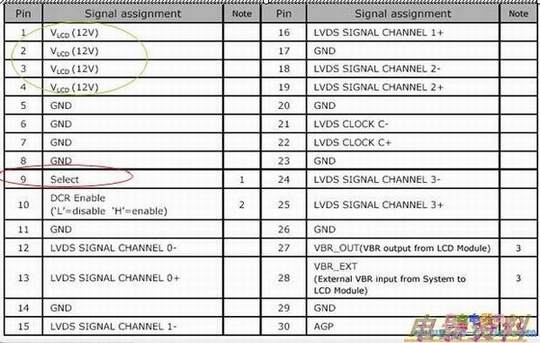 不同机芯LVDS输出排序不同,下图为GC32机芯的LVDS输出:
