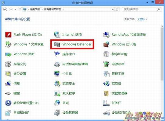 第三种:打开控制面板,在所有控制面板项中,也能发现Windows Defender的身影。