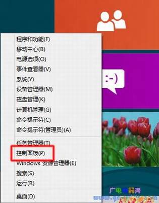 1.将鼠标指针移到屏幕左下角,右击,然后从菜单中选择 “控制面板” 。