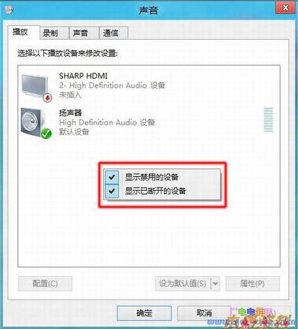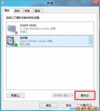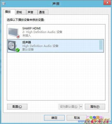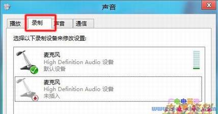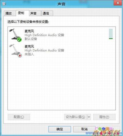 步骤 6: 配置 Windows 录音设置默认情况下,Windows 8 自动启用麦克风和线路输入端口。 执行以下步骤将麦克风或线路输入端口设置为默认端口,并对录音音量进行设定。