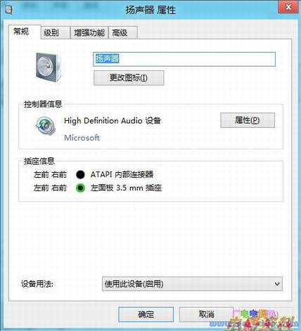 4.将打开“扬声器属性”窗口。图 11: “扬声器属性”窗口