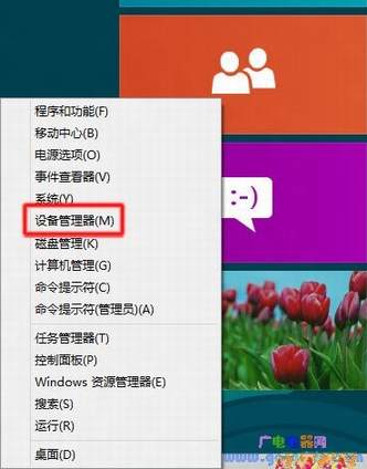 2.将鼠标指针移到屏幕左下角,右击,然后从菜单中选择 “设备管理器” 。