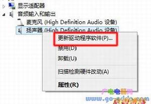 4.右击声音硬件的名称,然后选择“更新驱动程序软件……” 。