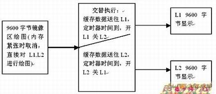如果应用系统没有足够的RAM,也不要紧。我们可以巧妙地应用SED1335提供的特性,把显示区L1,L2当成双缓冲,同样实现双缓冲的显示,一样可以使得屏幕画面变化时没有延时和闪烁现象。不过,此时的画点画线操作都与硬件相关,软件模块的移植性不够好。