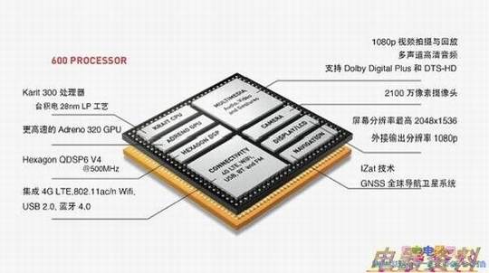 骁龙600的处理器型号也被称作是骁龙APQ8064T,我们可以将APQ8064T理解为之前的APQ8064的升级版,主要是在架构、主频上有所增强。此次APQ8064T所采用的Krait 300架构相比之前的Krait架构做出了很多调整。