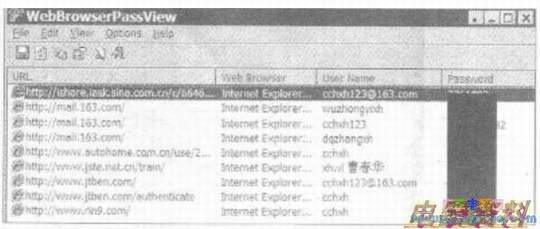 小贴士:一网打尽网页密码如果以上方法还不能满足你的要求,这里再推荐—款“WebBrowserPassView”工具,两款工具配合起来,功效加倍。使用方法非常简单,只要启动它,经过短暂的检测后,就能看到浏览器所记忆的网址、账号及密码了。目前支持的浏览器类型有IE、Firefox、Chrome及Opera等四种(如下图)。单击“保存”按钮,可以将这些信息以文本的方式保存下来。