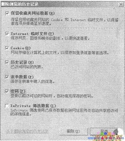 在IE浏览器中,依次打开“工具一Internet选项一内容”,在“自动完成”中,单击“设置”,然后勾选“表单”,并单击“删除自动完成历史记录”,弹出“删除浏览的历史记录”窗口(如下图),勾选表单数据、密码等选项,最后单击“删除”即可.