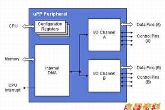 uPP 与另一种专用于可配置数据处理的 TI 外设—主机端口接口 (HPI) 有某种相似之处。HPI 是一种可帮助外部主机直接访问处理器内部存储器的并行接口。然而与 HPI 不同,uPP 不允许外部设备直接访问存储器,它需要设备软件对 I/O 传输进行排队。其最大差异可能在于 uPP 比 HPI 速度快得多,而且协议也简单得多。