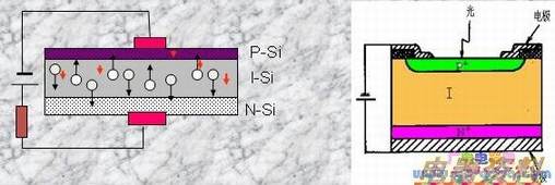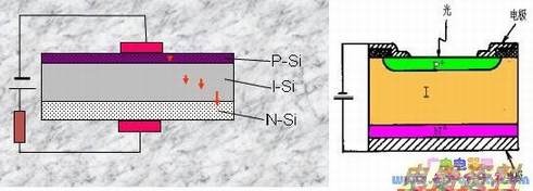 由于PN结耗尽层只有几微米,大部分入射光被中性区吸收, 因而光电转换效率低,响应速度慢。为改善器件的特性,在PN结中间设置一层本征半导体(称为I),这种结构便是常用的光电。