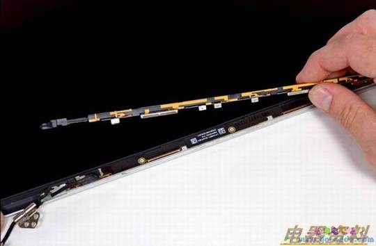 MacBook Pro使用的是一体成型外壳,虽然彰显了其精致的工艺,但也绝对是无线信号杀手。全封闭的金属机身,严重影响了无线信号传输。以前,MacBook Pro(以下简称MBP)曾经将天线放在光驱处,透过光驱开口接收信号,可如今,MBP的光驱已经消失,它该该如何传送无线网络信号呢?像IiPad那样,将天线放置在A面LOGO处自然是一个解决方案,但别忘了,Retina版MBP的屏幕采用一体封装技术,即将A面作为屏幕的封装材料,在这种情况下,在LOGO处放置天线,会出现厚度增加、走线困难等诸多制造工艺的难题。