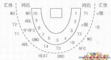 经查此机的FBT(T471)损坏,刚好手头有雷击损坏的“鸿迅”主板,其FBT是好的。决定对“鸿迅”FBT做变通处理。如图所示,将引脚一一对应接好。开机,出现正常彩色、图像、声音,且遥控反应正常,但无字符。判断“汇佳”FBT④脚(AFC)与“鸿迅”FBT⑧脚(H+AFC)的行逆程脉冲极性不同。因“鸿迅”主板上灯丝与AFC1共用一脚,而“汇佳”为独立方式。试在T471磁芯上加绕2匝后开机,仍无字符;加绕3匝后,出现飘忽的字符。进入总线,调整字符位嚣有关数据,出现正常字符。试将所加绕组头尾对调,出现无字符,且行幅右侧压缩黑边。