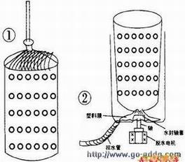 经过实践后,笔者的经验是,取出脱水桶倒置,取质量好的塑料袋,剪成直径约250ram的圆,使脱水桶的轴从其中心插入到底部,然后用橡胶或塑料绳在交合部位把塑料紧扎在轴上,见图1。放入洗衣机,塑料膜便在重力作用下把水封,轴套全部覆盖,当脱水时,水从桶上孔流出,沿桶壁汇入下面主轴,经塑料膜分散,水就从放下的排水管流出,当脱水电机启动时,水在离心力作用下会远离水封部位,同时塑料膜上的水也被脱得干干净净,参见图2。