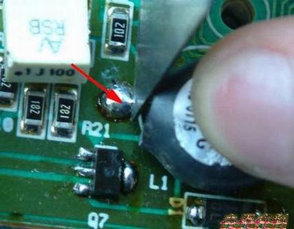 注意:在焊接之前,一定要取下高压板与主控板的连接插座(如下图红色箭头所示的插头位置),防止在焊接时,电烙铁产生的静电将主板上的芯片,造成损坏。