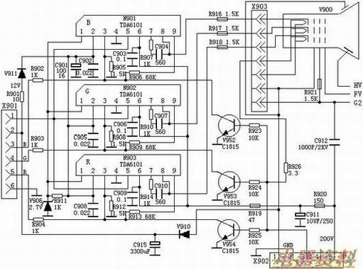 TDA6101为宽带视频放大,视频带宽达9M,一般用于较高档的机型中。