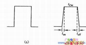 理想的矩形脉冲如下图(a)所示。实际的矩形波存在着上升时间和下降时间,如下图(b)所示。