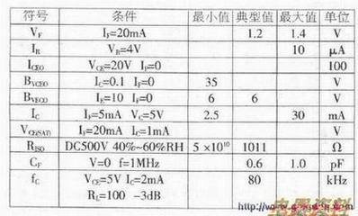 光耦合器的优点:抗干扰能力强,寿命长,传输效率高,输入端与输出端完全电隔离,其技术主要参数有:发光二极管的正向压降VF(单位V)、输入级与输出级之间的绝缘、集电极与发射极间反向、集电极与发射极间饱和压降、传输比(光耦合器的主要参数,当工作保持确定时,它等于直流输出电流与直流输入电流IF的百分比,CTR=(IO/IF)*100%)。右图是光耦合器817的Vce与发光二极管的正向电流IF以及Ic的关系。表2是光耦合器的直流参数及测试条件;表3是一些光耦合器的技术参数。