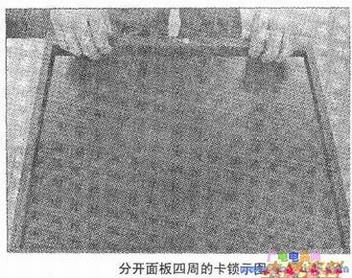 (3)将液晶面板朝上,分开面板四周的卡锁,如下图所示。