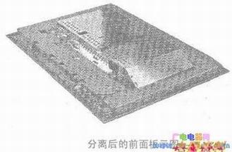 (8)拆下电路板与液晶面板的连线,再将液晶面板四周的螺钉拧下,卸下金属框架,此时,液晶面板就可以拆下,如下图所示。