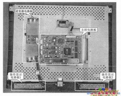 由上述步骤可知,该显示器中主要是由操作显示电路板、主控电路板及逆变器电路板构成的,这是由供电的显示器的典型结构。有些显示器是由供电的,在这些显示器中通常还会有开关电路板。