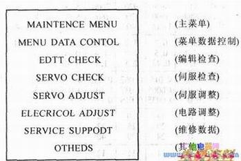 有时利用数字摄像机的维修菜单检查和检修能起到事半功倍的效果。现以Sony DVCAM -1800型数字摄像机的“磁带卡住,按E-JECT键不起作用”故障为例,讲解维修菜单的进入和使用。