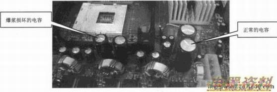 在死机送修的主板当中,很多是明显地损坏了,大多数从表面就可以明显地看出来,如下图所示。
