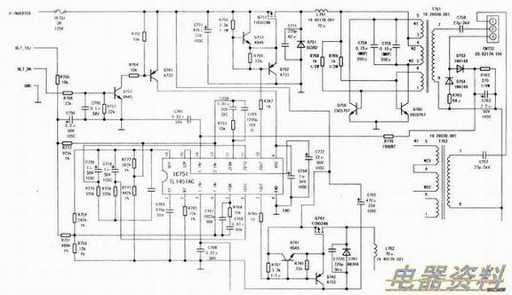 由电源开关变压器的次级整流、电容、保险组成。因为设计电路不同,电源高压一体板的供电有+12V和+16V两种(在这儿要注意不工作时,次级的输出电压偏高,+12V或+13V供电的可能会达到17V左右,16V供电的会达到20V以上,这也是为什么的+12V供电使用+25V或+35V的滤波电容,而不使用+16V电容的原因)。
