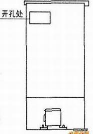 确认蒸发器泄漏后,如是先从冷藏制冷的冰箱,泄漏多在铜铝接头处。为找准铜铝接头准确位置,可将制冷系统简单抽空后加制冷剂,启动压机制冷,观察制冷剂进入冷藏室的位置(是先左还是先右),看好后作上记号,量好尺寸。然后从冰箱背面用直尺量出铜铝接头的中心位置,以该中心为基准向上50mm画一条长为50mm~180mm的直线,向下50mm也画一条与上线平行、长度相同的直线(铜铝接头在左,则在离左侧边沿100mm处,在右反之)。