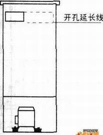 用直尺将两平行线两端连接成一矩形,见右图(注:画线时一定要用画针,线条才能画得准确。许多维修部在对箱体切口扒修时,切口四周形成极不规则的犬牙交错状,这是不讲究维修工艺,没有用针、用心去为切口破开做好准备造成的)。线画好后用电工刀成45度角压在线条上。再用小铁榔头敲打刀背,顺线后移,直至完成,即可取下铁皮。需要注意的是,只要冰箱背部不是冷轧板,均不可用磨光机切割,因磨光机振动性较大,手臂难以稳定控制、顺线切齐不易,又因磨光机转速快、温度高、容易将切口处沿表面的喷涂材料烧焦烧黄,影响美观,增大创口。