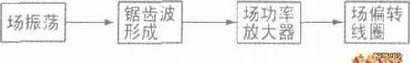 1.场偏场线圈开路;2.场功放IC输出端内部开路损坏;3.场功放IC无正、负极性的锯齿波输入。